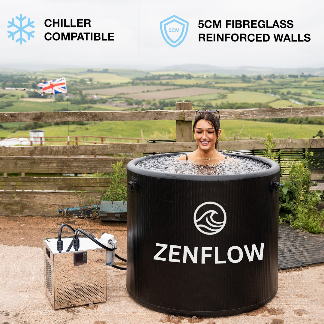 Fill your Zenflow Recovery Elite with water, then immerse yourself in the cold and let it work wonders. The Elite is designed to seamlessly integrate with our Pro or Mini chillers for an effortless ice bath experience without the need for added ice!